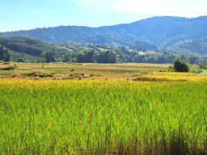 Maar de route die we gereden hebben was prachtig. Wij vinden het leuk om niet altijd de hoofdwegen te kiezen, waardoor je hele mooie plekjes tegenkomt. Prachtige rijstvelden met bergen op de achtergrond, grote velden met ananas en we vonden een struik/boom met grote tamarinde eraan.